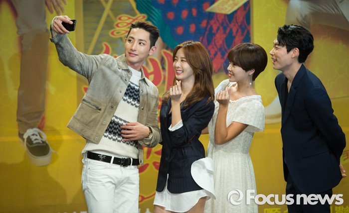 (서울=포커스뉴스) 25일 오후 서울 마포구 MBC상암사옥에서 열린 MBC 수목드라마 '운빨로맨스' 제작발표회에 참석한 배우 이수혁(왼쪽부터), 이청아, 황정음, 류준열이 포토타임을 갖고 있다.