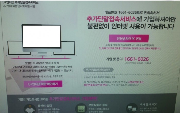 (서울=포커스뉴스) #노원에 사는 A씨는 최근 가정 내 인터넷 사용 때문에 골치를 앓고 있다. 며칠 전부터 자신의 노트북으로 인터넷에 접속하면 인증수 제한 경고 메시지가 뜨면서 연결되지 않는 것이다. 고객센터에 연락하니 인터넷을 사용하고 싶다면 PC나 노트북 1대당 5000원의 추가요금을 내라는 답변이 돌아왔다. A씨는 “집에 컴퓨터는 2대 뿐인데 경고창이 떴다가 다시 연결됐다가 하는 현상이 지속되고 있다”고 불만을 터뜨렸다.