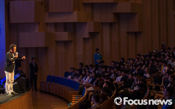 (서울=포커스뉴스) 25일 오후 서울 서대문구 연세대학교에서 열린 삼성 퀴즈 콘서트 '청춘門답'에 참석한 개그맨 서경석이 사회를 보고 있다.