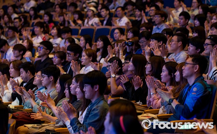 (서울=포커스뉴스) 25일 오후 서울 서대문구 연세대학교에서 열린 삼성 퀴즈 콘서트 '청춘門답'에 참석한 학생들이 박수 치고고 있다.