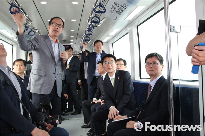 (인천=포커스뉴스) 강호인 국토교통부장관이 25일 오후 인천 경제자유구역 스마트 도시 센터를 방문 인천공항 자기부상철도를 점검하고 있다. <사진제공=국토교통부>