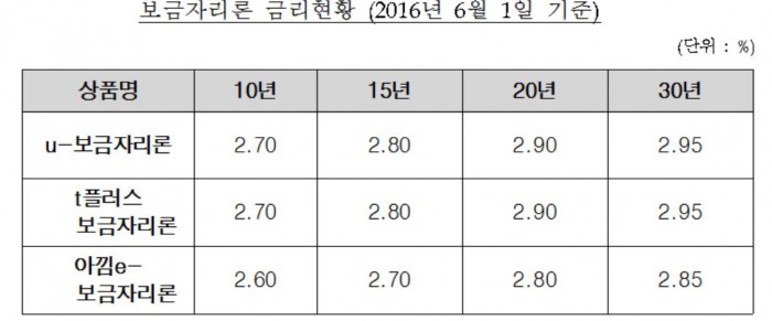 u-보금자리론, t플러스 보금자리론 2.70~2.95%