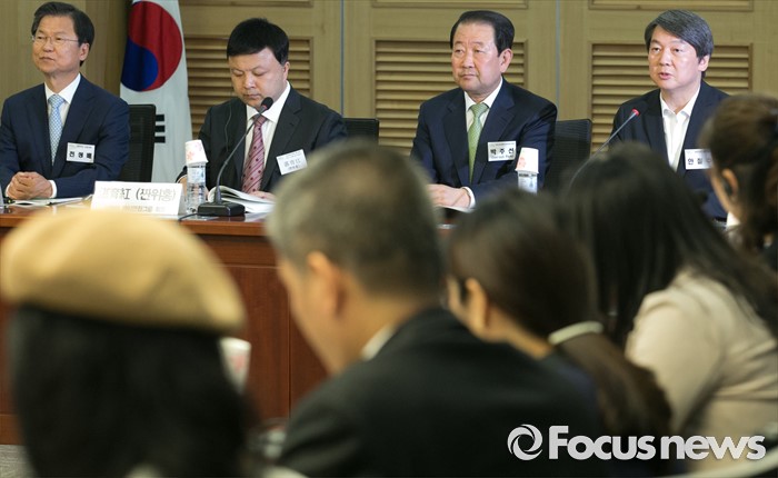 (서울=포커스뉴스) 26일 오전 서울 여의도 국회 의원회관에서 열린 광주 지역경제 활성화와 중국 관광객 유치 방안 포럼에 참석한 안철수(오른쪽) 국민의당 상임공동대표가 인사말을 하고 있다.