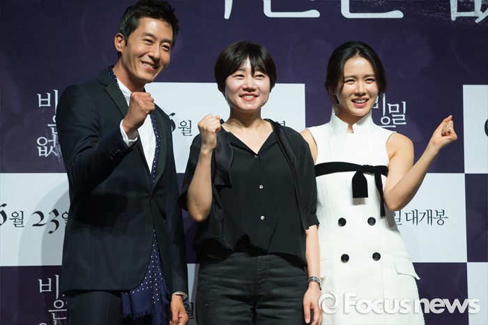 (서울=포커스뉴스) 26일 오전 서울 강남구 압구정 CGV에서 열린 영화 '비밀은 없다' 제작보고회에 참석한 배우 김주혁(왼쪽부터), 이경미 감독, 손예진이 포토타임을 갖고 있다.