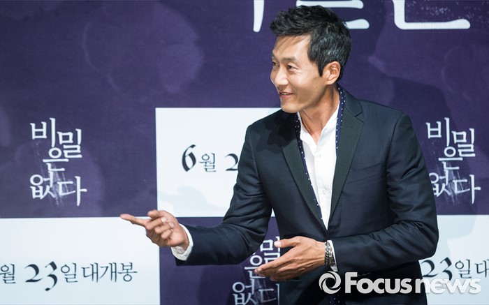 (서울=포커스뉴스) 26일 오전 서울 강남구 압구정 CGV에서 열린 영화 '비밀은 없다' 제작보고회에 참석한 배우 김주혁이 포토타임을 마친 후 사회자와 인사를 하고 있다.