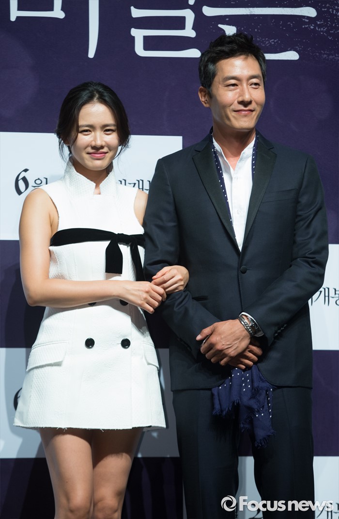 (서울=포커스뉴스) 26일 오전 서울 강남구 압구정 CGV에서 열린 영화 '비밀은 없다' 제작보고회에 참석한 배우 손예진(왼쪽)과 김주혁이 포토타임을 갖고 있다.