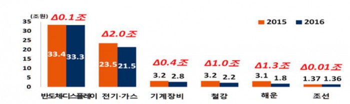 이어 중국의 추격과 공급 과잉되고 있는 철강 부문의 설비투자도 2015년 대비 31.3%감소한 2조2000억원, 업황부진을 겪고 있는 조선 부문의 설비투자도 2015년 대비 0.9%감소한 1조4000억원으로 산은은 예상했다.