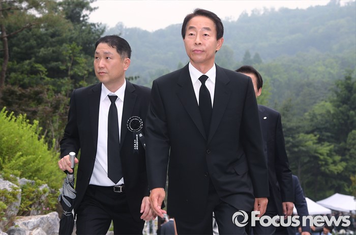 (서울=포커스뉴스) 고 김영삼 전 대통령의 차남인 현철씨가 26일 오후 서울 동작구 국립서울현충원에서 열린 고 김 전 대통령 묘비 제막식에 참석하고 있다.