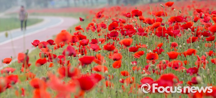 (음성=포커스뉴스) 26일 충북 음성군 음성읍 음성천변 일원에 양귀비가 만개해 있다.
