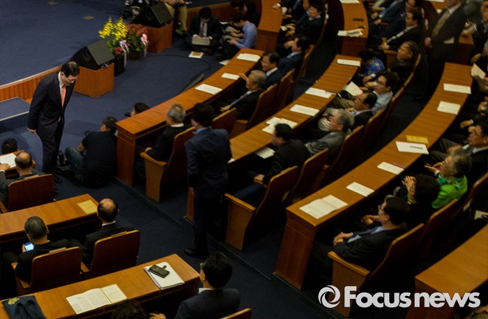 (서울=포커스뉴스) 26일 오후 서울 여의도 국회 헌정기념관에서 열린 '새한국의 비전' 창립 기념식에 참석한 정의화 국회의장이 인사말을 마친후 자리로 향하고 있다.