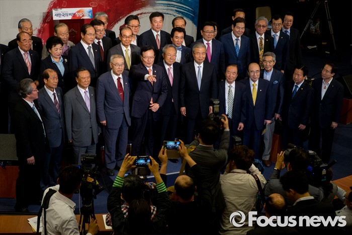 (서울=포커스뉴스) 26일 오후 서울 여의도 국회 헌정기념관에서 열린 '새한국의 비전' 창립 기념식에서 정의화 국회의장, 박관용 전 국회의장, 김종인 더불어민주당 비상대책위 대표를 비롯한 참석자들이 기념촬영을 갖고 있다.