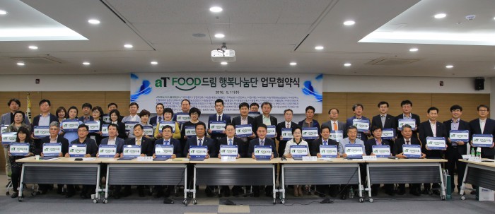 'aT FOOD드림 행복나눔단'은 농식품유통교육원의 교육생 기업 31개사와 지역 복지단체 10개소로 구성됐으며, 참여기업의 생산품인 신선·가공 식품을 매월 지정된 복지단체에 기부하게 된다. 연말엔 참여기업이 함께하는 봉사활동도 추진한다.