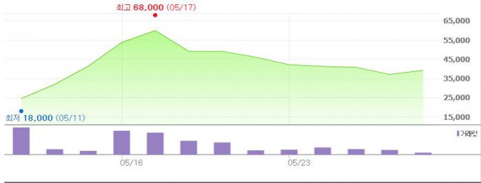 앞서 주가는 18일부터 26일까지 7거래일 연속 하락한 바 있다. 특히 전날에는 4만원선을 내주며 9% 넘게 급락했다.주가 추이 <그래픽출처=네이버>