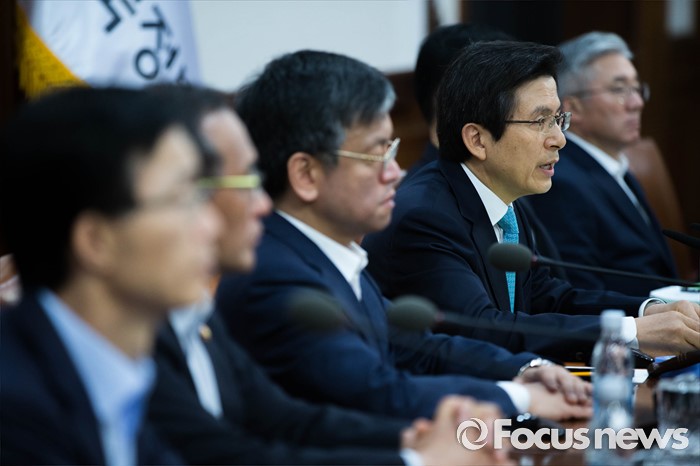 (서울=포커스뉴스) 27일 오전 서울 종로구 정부서울청사에서 열린 임시 국무회의에서 황교안 국무총리가 모두발언을 하고 있다.