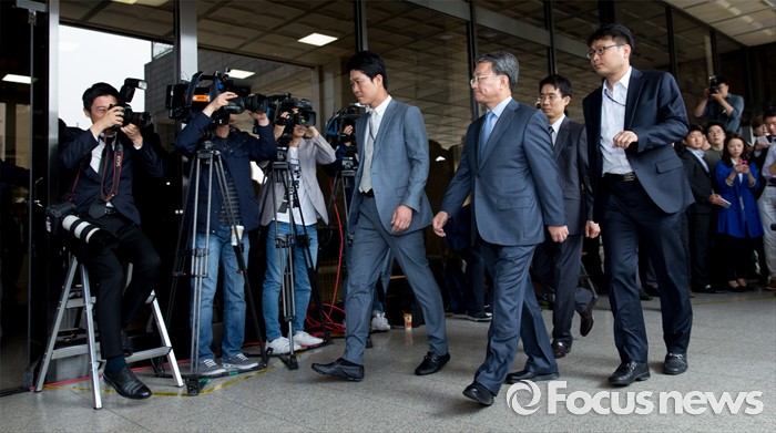 (서울=포커스뉴스) 정운호 네이처리퍼블릭 대표 로비 의혹에 연루된 홍만표 변호사가 27일 오전 서울중앙지방검찰청으로 출석하고 있다.