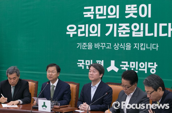 (서울=포커스뉴스) 천정배(왼쪽 두번째) 국민의당 공동대표가 27일 오전 서울 여의도 국회에서 열린 최고위원회의에 참석해 모두발언을 하고 있다.