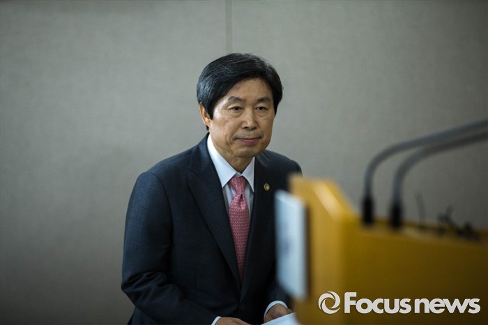 (서울=포커스뉴스) 27일 오전 서울 종로구 정부서울청사에서 열린 임시 국무회의가 끝난 뒤 제정부 법제처 차장이 기자회견을 하기 위해 단상으로 향하고 있다.