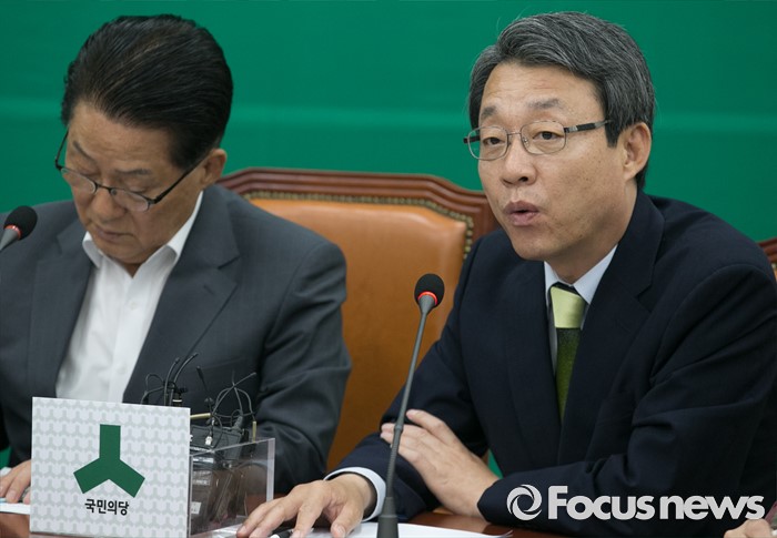 (서울=포커스뉴스) 김성식 국민의당 정책위의장이 27일 오전 서울 여의도 국회에서 열린 최고위원회의에 참석해 발언을 하고 있다. 왼쪽은 박지원 원내대표.