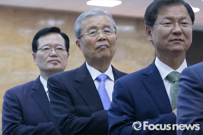 (서울=포커스뉴스) 27일 오전 서울 여의도 국회에서 열린 68주년 국회 개원 기념식에 참석한 천정배(오른쪽부터) 국민의당 공동대표, 김종인 더불어민주당 비대위 대표, 정의화 국회의장 등 참석자들이 국기에 대한 경례를 하고 있다.