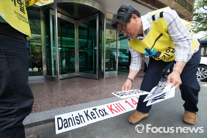 (서울=포커스뉴스) 환경보건시민센터 관계자들이 27일 오전 서울 용산구 주한 덴마크대사관 앞에서 가습기살균제 사건 관련 덴마크 정부 행동 촉구 항의서한 전달 기자회견을 준비하고 있다.