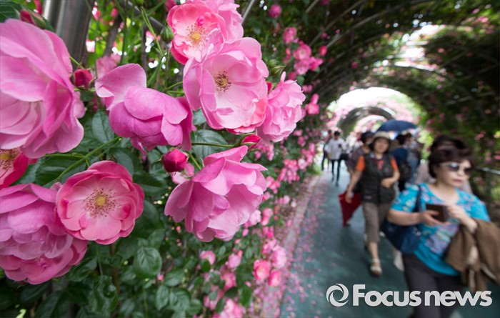 (서울=포커스뉴스) 27일 오후 경기도 고양시 일산호수공원에서 열린 2016 호수 장미 페스티벌을 찾은 시민들이 장미를 보며 즐거운 시간을 보내고 있다.