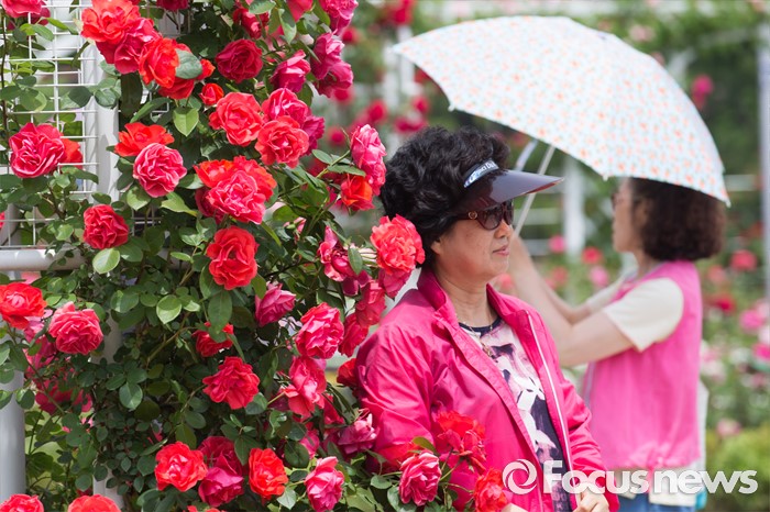 (서울=포커스뉴스) 27일 오후 경기도 고양시 일산호수공원에서 열린 2016 호수 장미 페스티벌을 찾은 시민들이 장미를 보며 즐거운 시간을 보내고 있다.