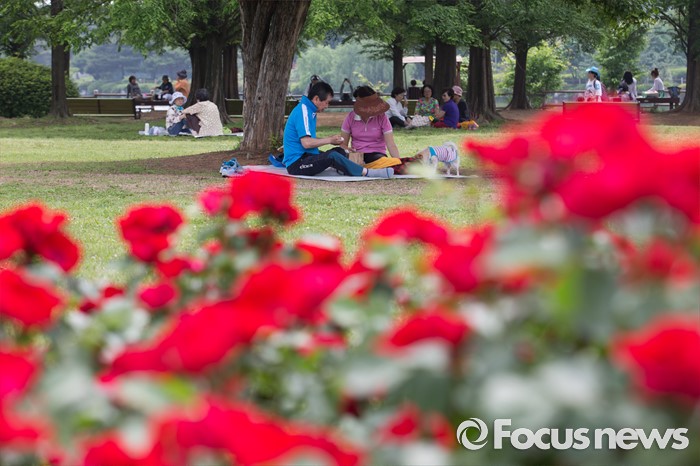 (서울=포커스뉴스) 27일 오후 경기도 고양시 일산호수공원에서 열린 2016 호수 장미 페스티벌을 찾은 시민들이 장미를 보며 즐거운 시간을 보내고 있다.