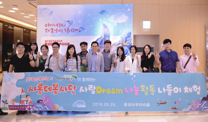 이번에 진행된 문화체험활동은 롯데손해보험과 초록우산어린이재단이 협약한 '사랑 Dream 나눔 활동'의 일환으로 추진되었으며, 지난 3월 운영된 뮤지컬관람 행사에 이어보육원 아동 25명을 초청, 롯데손해보험 샤롯데봉사단원과 함께 아쿠아리움 관람 및 체험 및 멘토링 활동 등 프로그램을 진행했다.<사진제공=롯데손해보험>