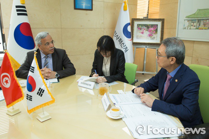 (서울=포커스뉴스) 이근면(오른쪽) 인사혁신처장이 27일 정부서울청사에서 카멜 아야디 (튀니지 공공서비스·굿거버넌스·반부패부) 장관을 접견하고 대한민국의 인사혁신과 공무원 역량강화, 공직윤리 등에 설명을 하고 있다.<사진제공=인사혁신처>