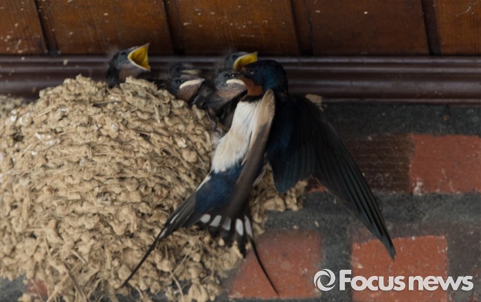 (청주=포커스뉴스) 27일 오후 충북 청주시 강내면에 위치한 한 음식점에 20쌍의 제비들이 둥지를 틀어 눈길을 끌고 있다.