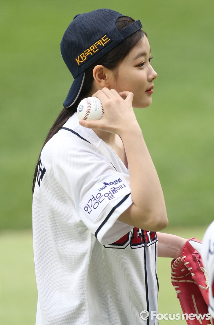 | △ 시구한 공을 갖고 퇴장하는 배우 김유정 |