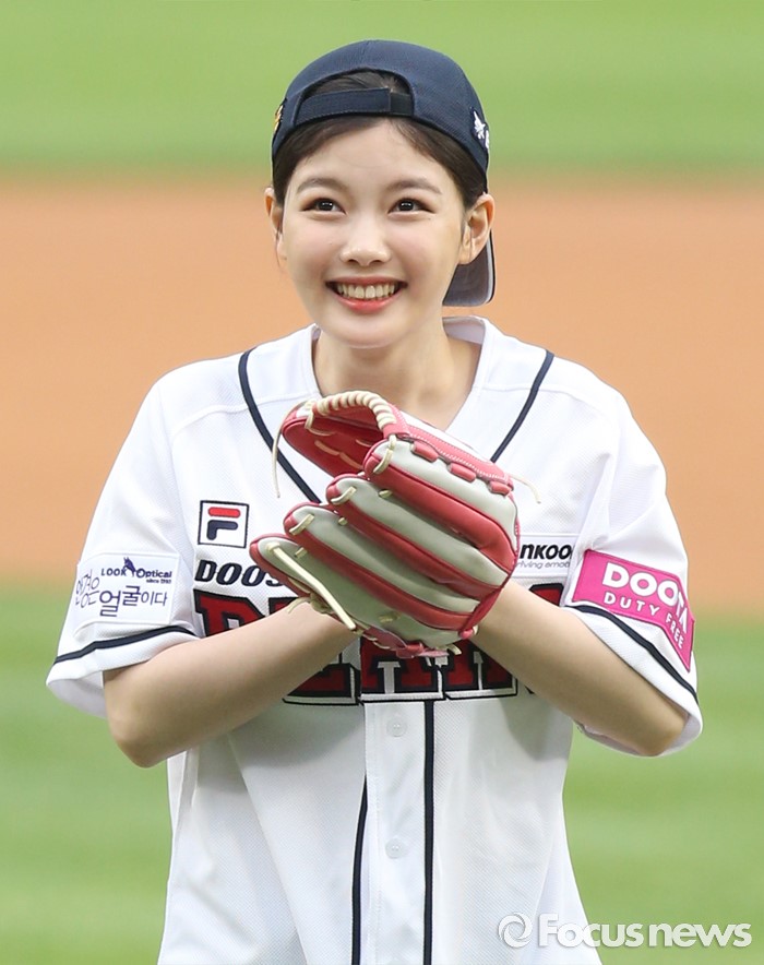 (서울=포커스뉴스) 27일 서울 잠실구장에서 열린 2016 프로야구 LG-두산 경기에 앞서 배우 김유정이 시구후 밝은 미소를 띠고 있다.