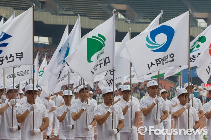 (서울=포커스뉴스) 2016 전국생활체육대축전 개막식이 열린 27일 오후 서울 송파구 잠실 올림픽주경기장에서 개막 축하 퍼레이드가 진행되고 있다.