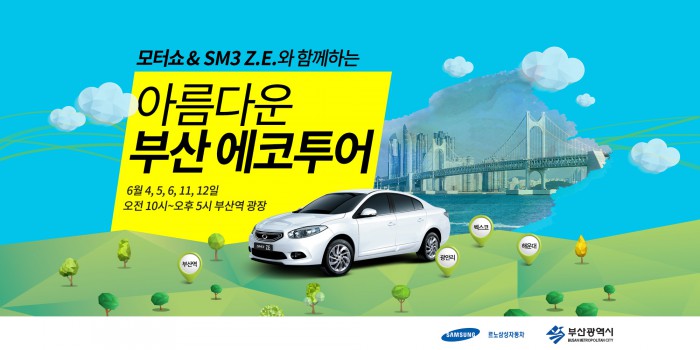 (서울=포커스뉴스) 르노삼성자동차는 전기차 SM3 Z.E.를 타고 부산 지역 주요 관광지를 둘러보는 ‘에코 투어’ 이벤트를 오는 6월 부산모터쇼 기간 동안 진행한다.