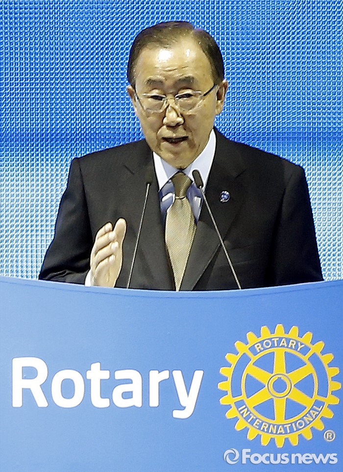 (서울=포커스뉴스) 반기문 유엔 사무총장이 29일 오전 경기 고양시 킨텍스 제1전시장에서 열린 2016 국제로타리 세계대회에 참석해 기조연설 하고 있다.