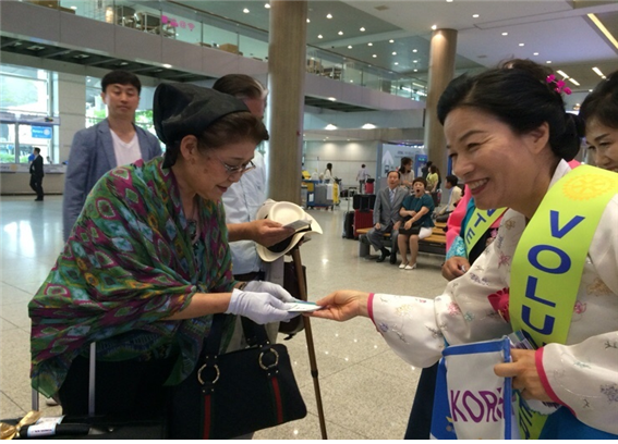 이번 리플릿은 '2016 국제로타리 세계대회(5월28일~6월1일)' 참가자들이 주로 입국하는 지난 27일 첫선을 보였으며 앞으로 외래 관광객들의 의견 등을 지속적으로 수렴해 리플릿의 내용을 개선하고 다른 입국 장소와 항공기 기내 홍보 등 배포 장소 및 홍보 확대를 병행해 추진할 예정이다.문화체육관광부는 한국관광공사와 함께 방한 외래 관광객을 대상으로 '관광정보 리플릿(이하 리플릿)'을 배포한다. 사진은 인천공항에서 관광정보 리플릿을 배포하고 있는 모습이다.<사진제공=문화체육관광부>