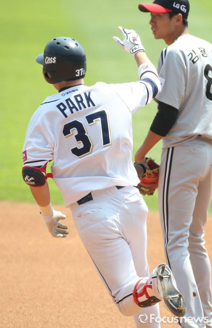 (서울=포커스뉴스) 29일 서울 잠실구장에서 열린 2016프로야구 LG-두산 경기 1회말 두산 선두타자 박건우가 좌월 솔로 홈런을 치고 달려 나가고 있다.