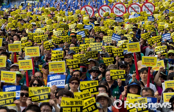 민주노총은 "19대 국회는 노동개악법안(양대지침)으로 내내 몸살을 앓았으며 이로 인해 노동자들에 대한 협박, 강요 등 불법행위가 일어나고 있다"고 비판했다.