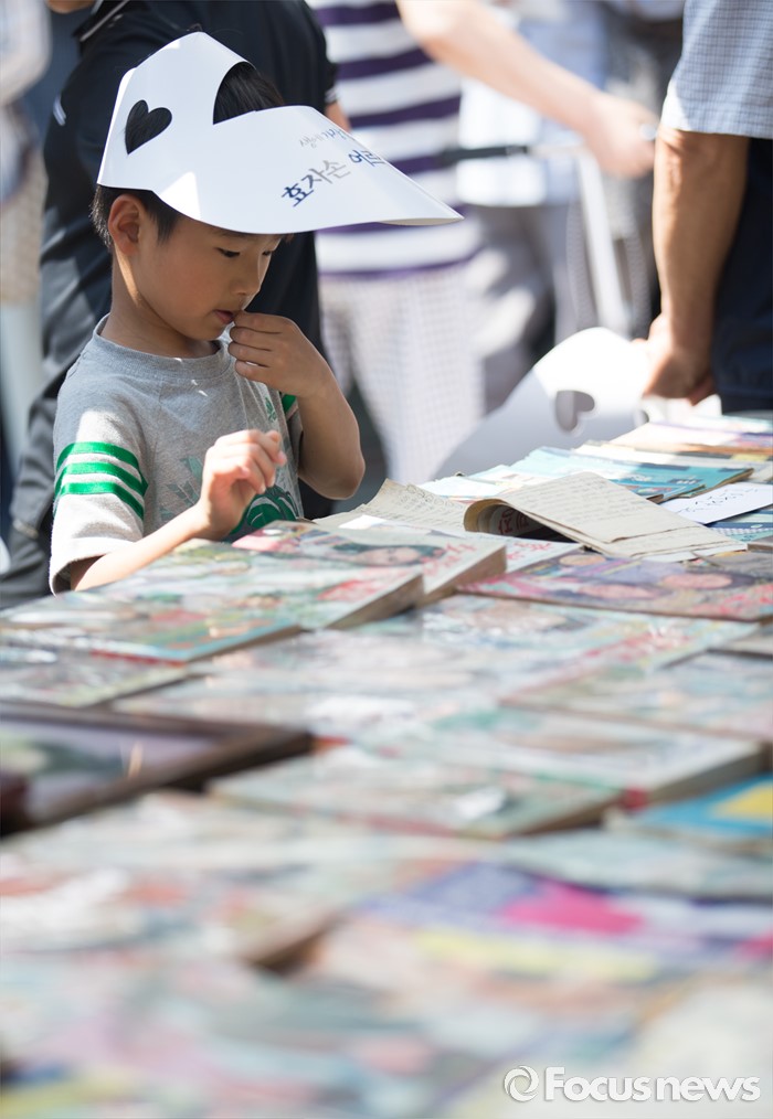 (서울=포커스뉴스) 29일 오후 서울 종로구 교동초등학교에서 열린 '2016 효자손 어르신 대축제'를 찾은 한 아이가 옛 물건을 살펴보고 있다.