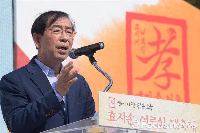 (서울=포커스뉴스) 박원순 서울시장이 29일 오후 서울 종로구 교동초등학교에서 열린 '2016 효자손 어르신 대축제'에 참석해 인사말을 하고 있다.