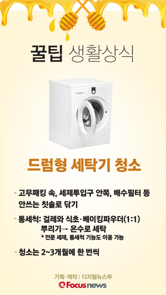 (서울=포커스뉴스) 세탁기도 가끔은 세탁이 필요합니다. 오늘의 생활상식, 드럼형 세탁기 청소 시 주의점 알려드립니다.