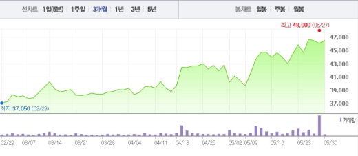 YG엔터는 30일 오전 9시24분 현재 전일 대비 0.98%(450원) 상승한 4만6500원에 거래되고 있다.