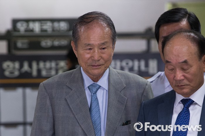 (서울=포커스뉴스) 포스코 비리에 연루된 혐의를 받고 있는 이상득 전 의원이 1차 공판에 출석하기 위해 30일 오전 서울 서초구 서울중앙지방법원으로 들어서고 있다.