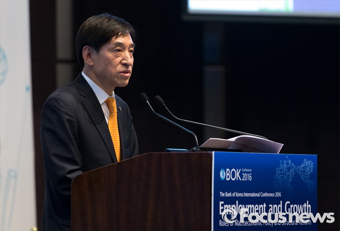 (서울=포커스뉴스) 30일 오전 서울 중구 웨스틴조선호텔에서 열린 2016 한국은행 국제컨퍼런스에서 이주열 한국은행 총재가 개회사를 하고 있다.