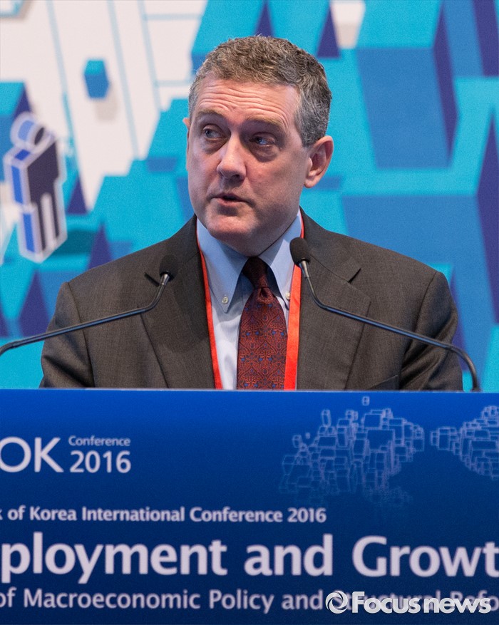 (서울=포커스뉴스) 30일 오전 서울 중구 웨스틴조선호텔에서 열린 2016 한국은행 국제컨퍼런스에서 제임스 불라드 세인트루이스 연은 총재가 기조연설을 하고 있다.