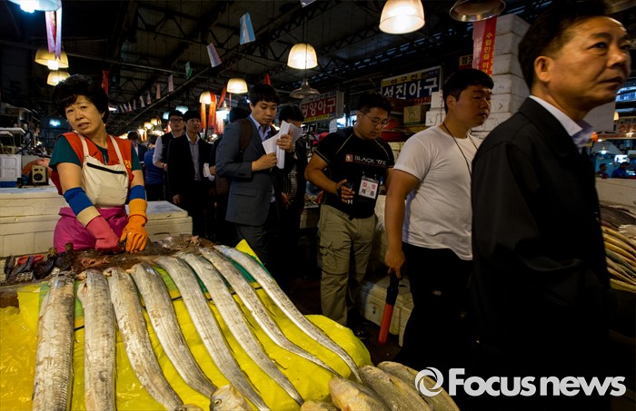 (서울=포커스뉴스) 30일 오전 서울 동작구 구 노량진수산시장에서 서울중앙지법 관계자들이 법원의 점유이전금지가처분을 집행하고 있다. 법원은 이날 영업은 지속하되 수협의 동의없이 가게를 타인에게 이전·전대하면 안된다고 상인들에게 통보 했다.