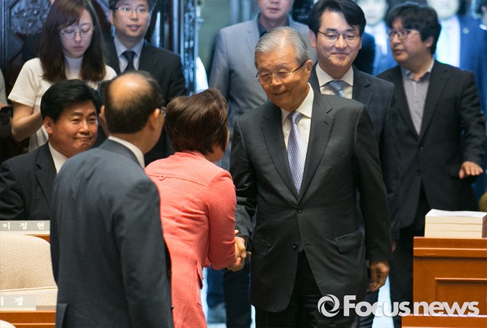(서울=포커스뉴스) 20대 국회 임기가 시작된 30일 오전 서울 여의도 국회에서 열린 더불어민주당 의원총회에 참석한 김종인 비대위 대표가 의원들과 인사하며 입장하고 있다.