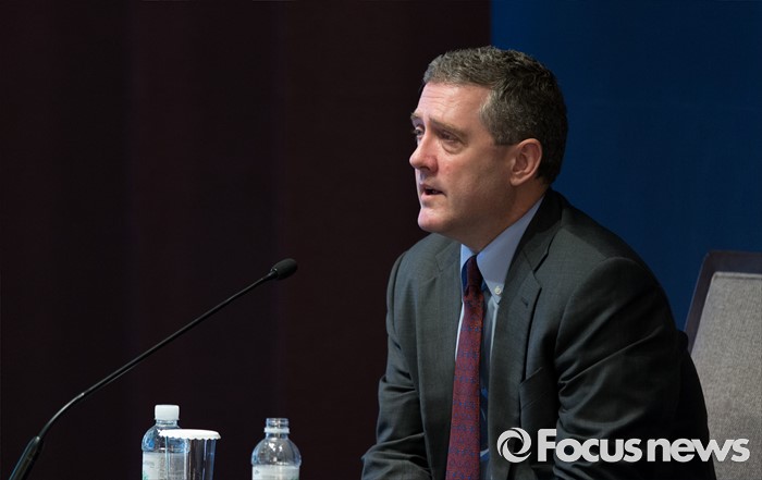 (서울=포커스뉴스) 30일 오전 서울 중구 웨스틴조선호텔에서 열린 2016 한국은행 국제컨퍼런스에서 제임스 불라드 세인트루이스 연은 총재가 취재진 질문에 답하고 있다.