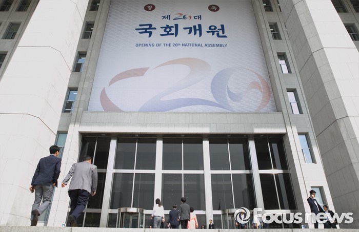(서울=포커스뉴스) 20대 국회 임기가 시작된 30일 오전 서울 여의도 국회에서 의원들이 각 당 의원총회에 참석하기 위해 본청으로 들어서고 있다.