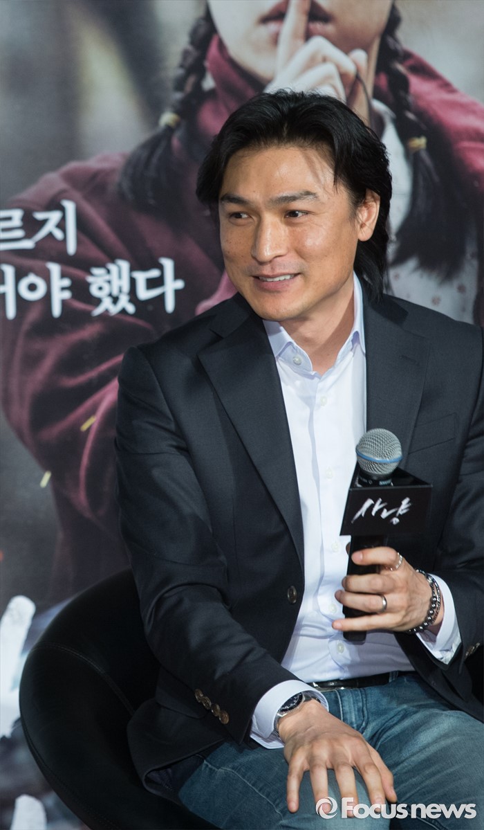 (서울=포커스뉴스) 30일 오전 서울 광진구 건대입구 롯데시네마에서 열린 영화 '사냥' 제작보고회에 참석한 이우철 감독이 질문을 받고 있다.